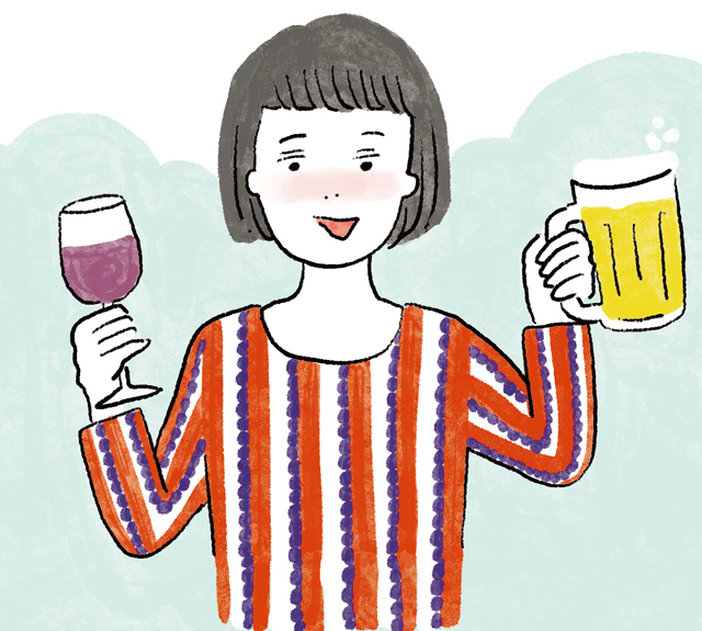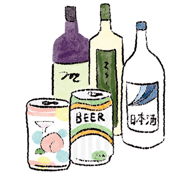 お酒には心筋梗塞や脳梗塞のリスクを下げる効果がありますが、飲み過ぎると「食道がん」や「咽頭がん」のリスクがアップします。ビール350ml缶1~2本、日本酒1合程度が適量です。休肝日も作りましょう。
