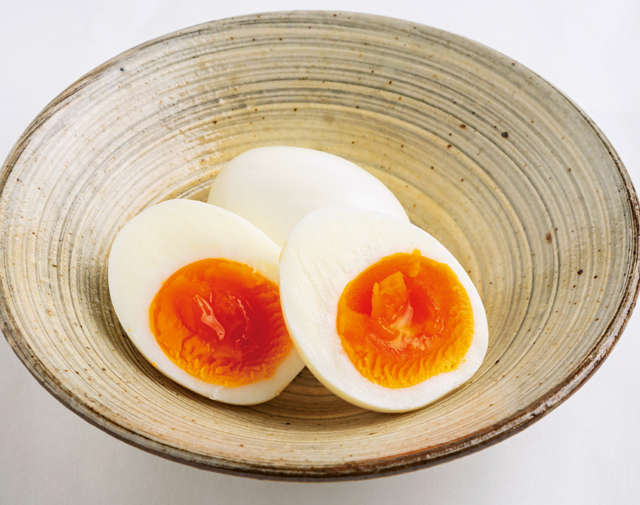(1)鍋に湯を沸かし、冷蔵庫から出したての卵をスプーンにのせてそっと入れ、8分茹でる。